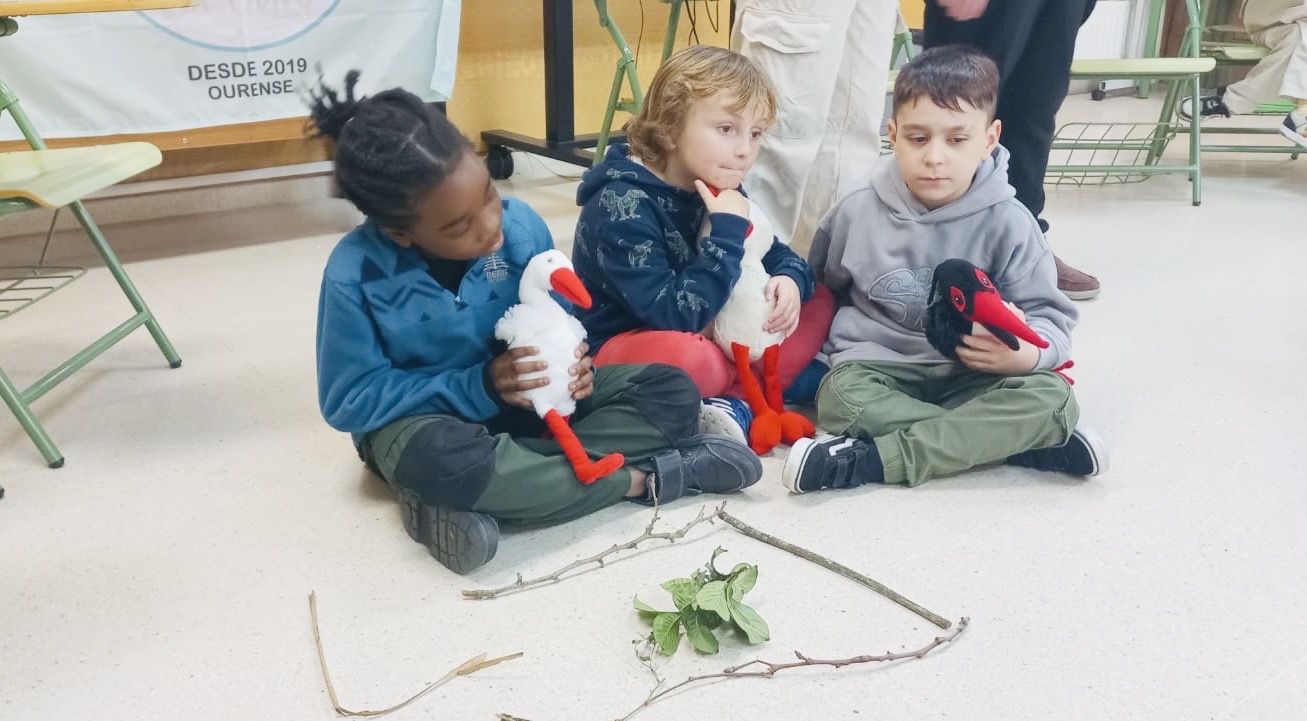 El compromiso con la biodiversidad urbana de Ourense ha sumado hoy 50 nuevos y entusiastas protectores. Los alumnos de 1º y 2º de Primaria del CEIP Filomena Dato han participado en una jornada dedicada a conocer y proteger a nuestra pareja de cigüeñas más emblemática: Auria y Ramón.